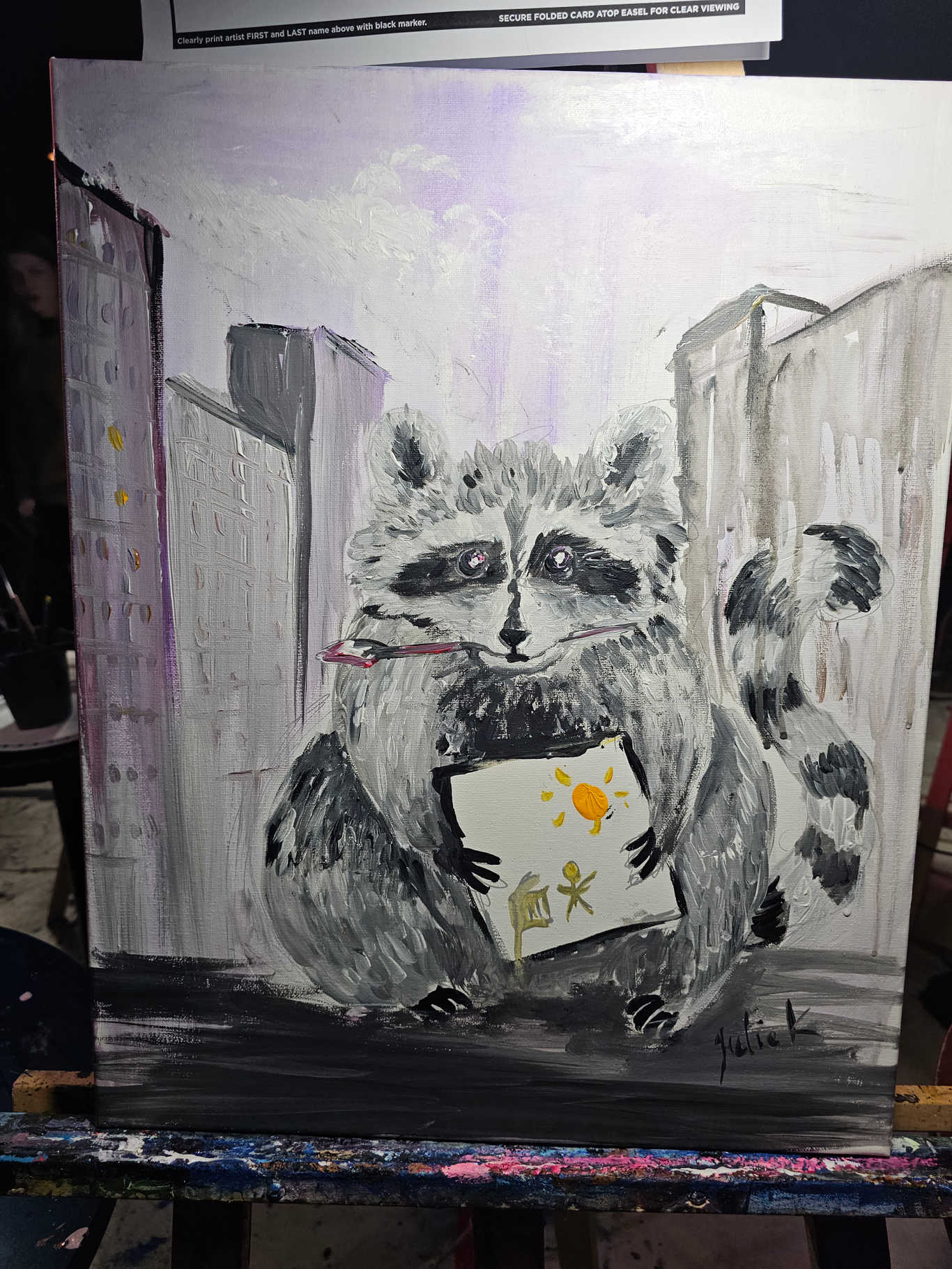 Art Battle competitions are determined by audience vote. Votes cast by past competitors, collectors, and in-person audience are worth more than those cast by app and online, We do this so that the best art and artists win. We also continue to collect votes after winners are announced. Winners are marked as announced at the live events, but in very rare cases, votes collected after winners have been announced may show the winner at less than the first ranked by voting. All of these efforts are in place to ensure that the best art wins and that artists receive recognition for their performance in the competition.