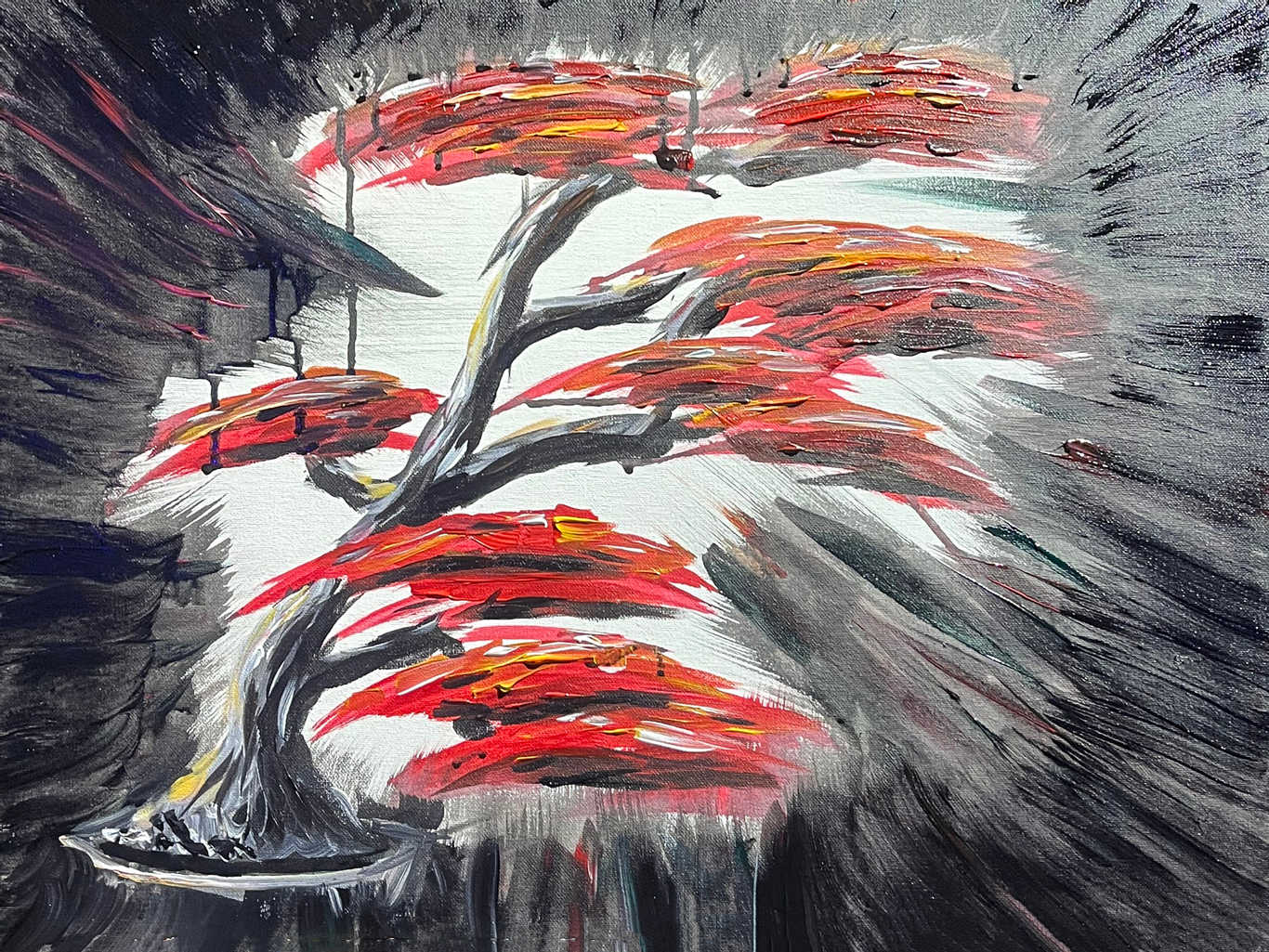 Art Battle competitions are determined by audience vote. Votes cast by past competitors, collectors, and in-person audience are worth more than those cast by app and online, We do this so that the best art and artists win. We also continue to collect votes after winners are announced. Winners are marked as announced at the live events, but in very rare cases, votes collected after winners have been announced may show the winner at less than the first ranked by voting. All of these efforts are in place to ensure that the best art wins and that artists receive recognition for their performance in the competition.