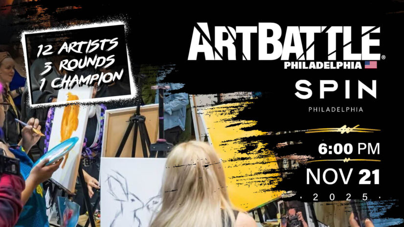 Art Battle Philadelphia – November 21, 2025 Doors @ 6:00pm / Painting @ 6:30pm Spin Philly – 211 South 15th Street, Philadelphia, PA view on Eventbrite Join us in Philadelphia for a Friday night full of live art! Be a part of the electrifying energy as skilled artists engage in a high-speed showdown, flinging paint with every stroke. Cast your vote … Read More