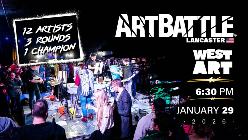 Art Battle Lancaster – January 29, 2026 Doors @ 6:30pm / Painting @ 7:00pm West Art – 800 Buchanan Ave, Lancaster, PA view on Eventbrite Join us the first AB Lancaster of the year! Experience an unforgettable evening of creativity and competition at West Art! Watch as talented artists transform blank canvases into stunning masterpieces in just 20 thrilling minutes … Read More